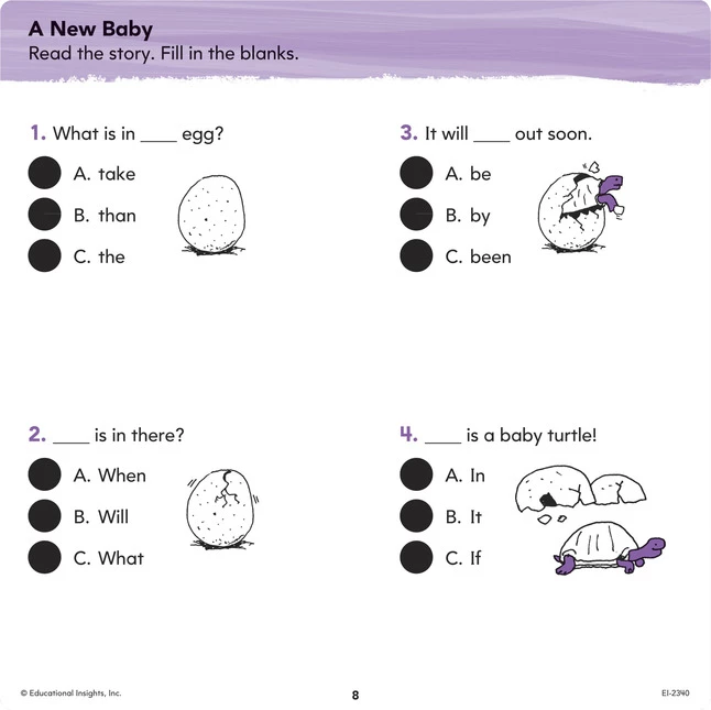Educational Insights helps young ones practice 300 plus words from Dolch and Fry word lists! Featuring 300 of the most commonly occurring words in the English language, this set gives beginning and struggling readers a solid foundation for reading success. Forty double-sided cards (80 passages) provide practice reading simple stories, jokes, poems, and more. Each passage features four multiple-choice questions focusing on target words. Students use the Hot Dots pen (available separately) to respond and receive instant reinforcement and feedback. Perfect for learning centers or anywhere in the classroom, this self-checking system enables students to work independently. Grades K and above. Perfect for beginning and struggling readers. Hot Dot Pen not included.
