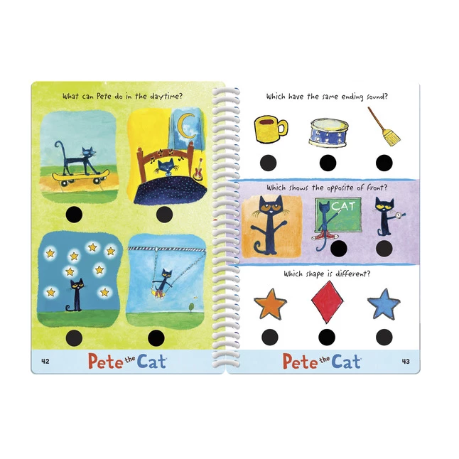 Hot Dots Jr. Pete the Cat Preschool Rocks! Set, level 2 of the two all-new Hot Dots(R) Jr. Pete the Cat(R) preschool sets will have kids learning in no time. A perfect complement to the Pete the Cat(R) storybooks that children, parents, and teachers already love. This set provides 200+ lessons on a variety of subjects such as reading, math, science, social studies, and more! It includes two spiral-bound activity card sets, an all-new Pete the Cat(R)-Your Groovin’ Schoolin’ Friend pen, reward stickers, and an award certificate for little learners who are ready to advance to the next level. Perfect for independent learning-simply press the pen on an answer for immediate audio and visual feedback. Ages 3 and Above.
