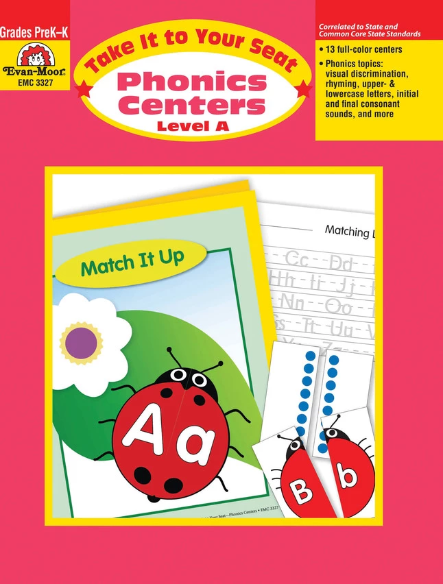 Evan-Moor Evan Moor Take It To Your Seat Phonics Centers Level A, Grades PreK To K