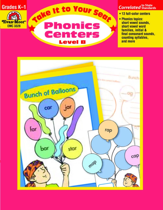 Evan-Moor Evan Moor Take It To Your Seat Phonics Centers Level B, Grades K To 1