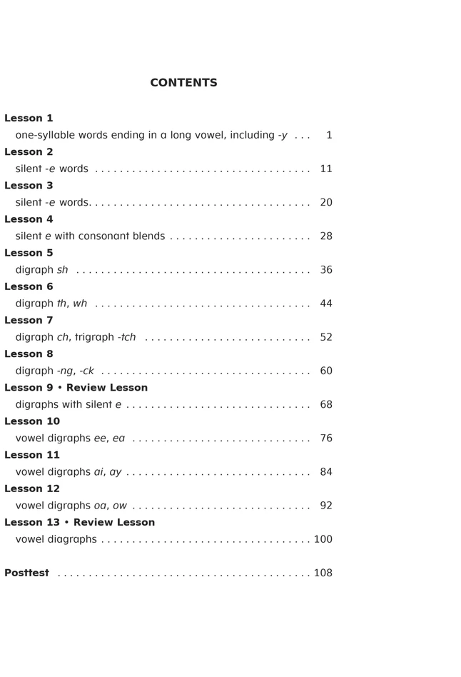 - Book 3 introduces concepts that include words that present y as a vowel, long vowels with silent e, consonant and vowel digraphs, one-syllable words that include digraphs and long vowel sounds, and more