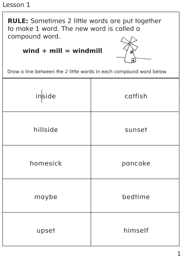 - Consistent exercise formats with simple directions, black-and-white illustrations, and concrete examples allow students to learn and work independently