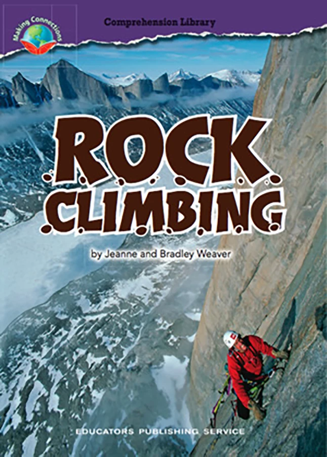 Scale mountains in this informational text about the exciting sport of rock climbing. Climbing gear and safety are also discussed. Students focus on main idea in this reader. Making Connections Comprehension Library readers engage students with appealing fiction and nonfiction titles. Students apply essential strategies and skills while reading engaging texts to build reading comprehension. Written by Jeanne and Bradley Weaver. Each book has 32 pages. For grade 5. Sold as a set of 6.