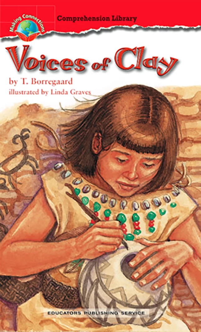 The hot, dry north winds that blow over the cliffs and rift valley of Aponvi sing a song of famine and death in the book Voices of Clay. Find out how young Catori’s beautiful pottery gives hope-and ultimately, a new life to the people of Aponvi. Students focus on figurative language in this reader. Making Connections Comprehension Library readers engage students with appealing fiction and nonfiction titles. Students apply essential strategies and skills while reading engaging texts to build reading comprehension. Written by T. Borregaard. Each book has 40 pages. For grade 2. Sold as a set of 6.