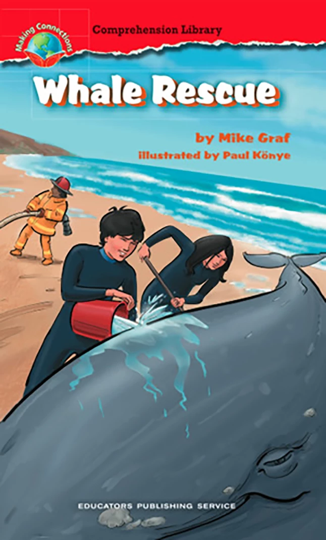 In the book Whale Rescue, teenage surfers Christopher and Rachel find a beached whale. Will their community be able to save it? Students focus on cause and effect in this reader. Making Connections Comprehension Library readers engage students with appealing fiction and nonfiction titles. Students apply essential strategies and skills while reading engaging texts to build reading comprehension. Written by Mike Graf with 40 pages for grade 6. Sold as a set of 6.
