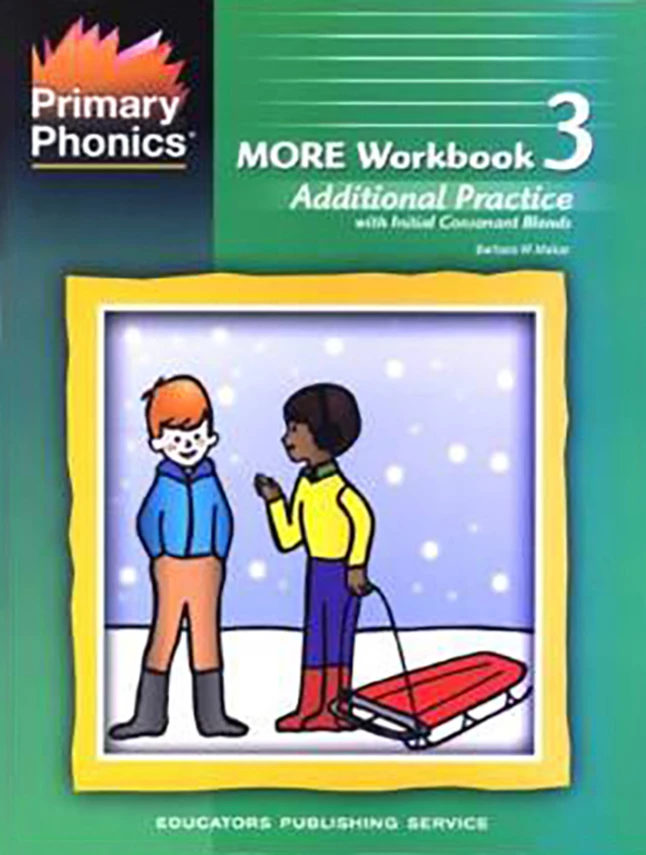 The More Workbook 3 provides additional reinforcement of the initial consonant blends introduced in Workbook 3 of Primary Phonics. More Workbook 3 and Workbook 3 follow the same sequence. Students fill in the missing initial consonant blend in the spaces provided next to pictures. The blends needed for the exercises are printed on the top left corner of the page.
