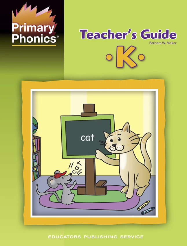 The Primary Phonics Teacher’s Guide K provides instructions to administer the lessons in The Primary Phonics Workbook K. The scripts may be read by the teacher or recorded for students to use independently. In each lesson, students listen to oral directions and form lowercase letters, circle the key letter in context, and identify pictures that begin with that letter. Each lesson also includes cumulative review.