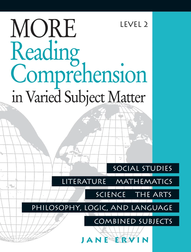 Specifically targeted to junior high school and up, the MORE Reading Comprehension series helps students who need more practice in reading comprehension skills. Each book contains 25 selections and has the same format as other books in the Reading Comprehension series, with selections on social studies, science, literature and language, philosophy, logic and mathematics, the arts, and combined subjects. Exercises develop student skills in finding the main idea, identifying facts, following sequences, drawing conclusions, and making assumptions. The books also contain a new writing component that gives students practice in writing a short paragraph as well as a longer piece that gives their interpretation or opinion of a question related to the selection.