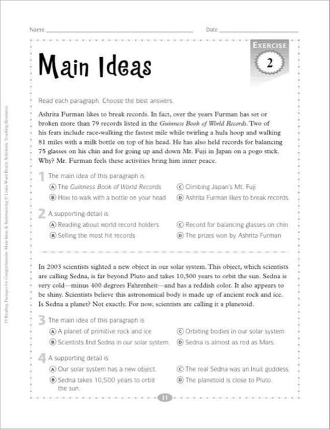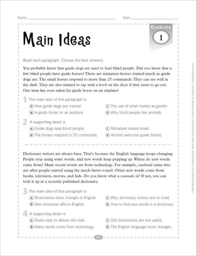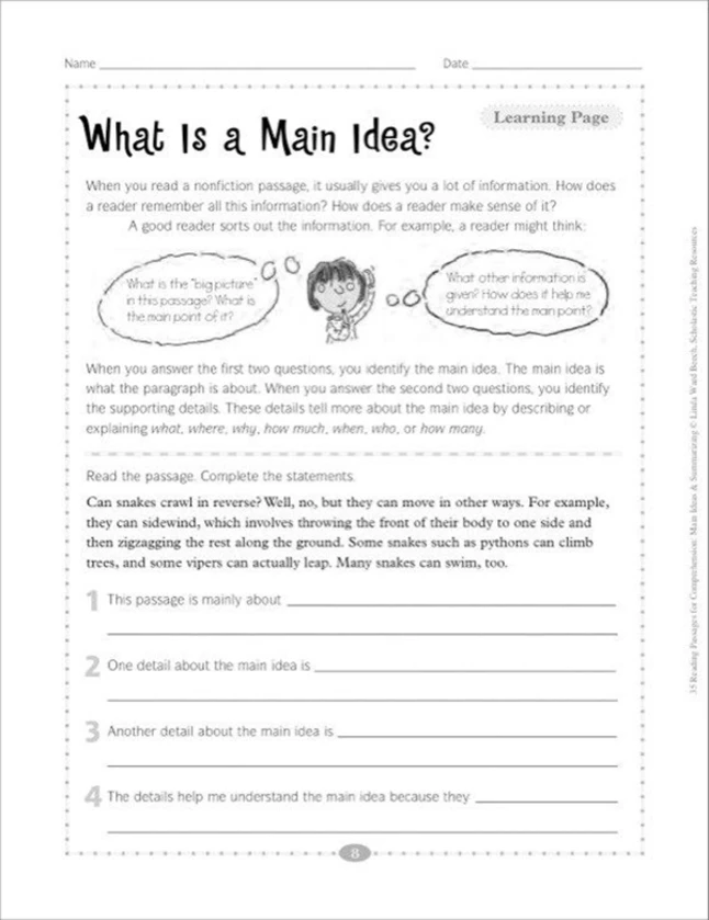 Scholastic Reading Passages For Comprehension, Main Ideas And Summarizing