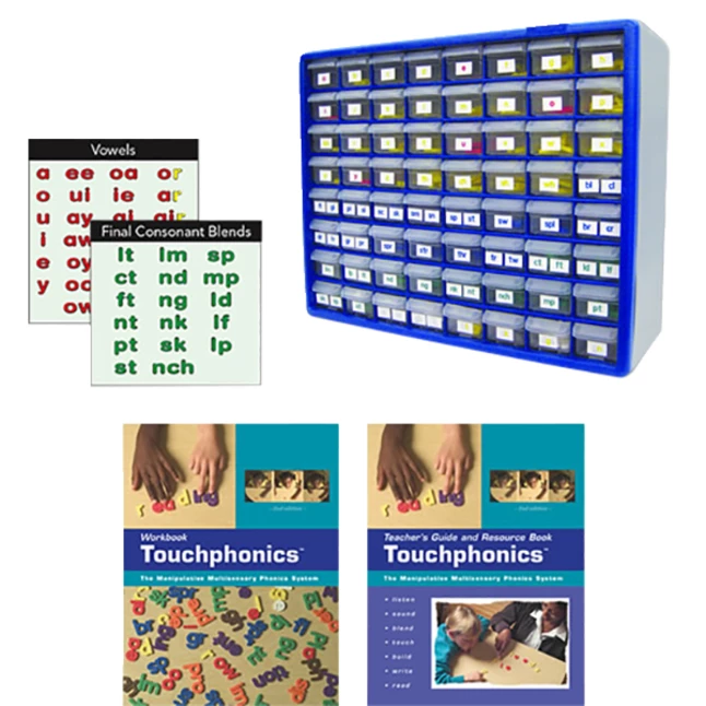 Touchphonics provides at-risk students with a multisensory approach to phonics, word structure, and spelling. Students use Touch-Units to link sounds to letters, recognize patterns, and build and write words before finally reading words in context.