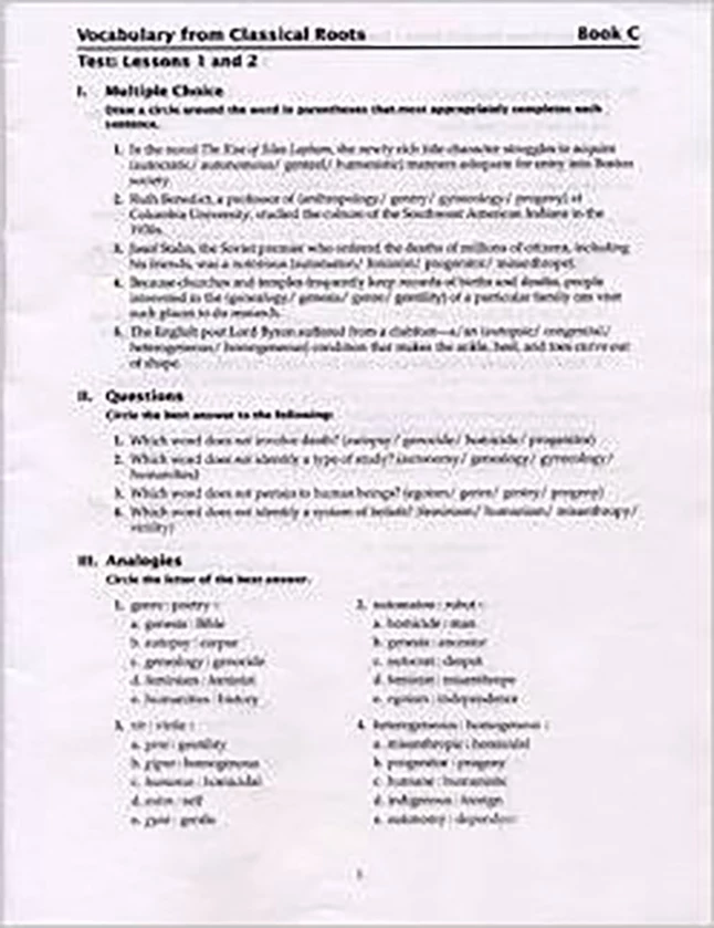 Vocabulary From Classical Roots is ideal for students mastering a growing content-area vocabulary in social studies, science, literature, and mathematics – predominantly multisyllabic Greek- and Latin-based words – to meet assessment demands.