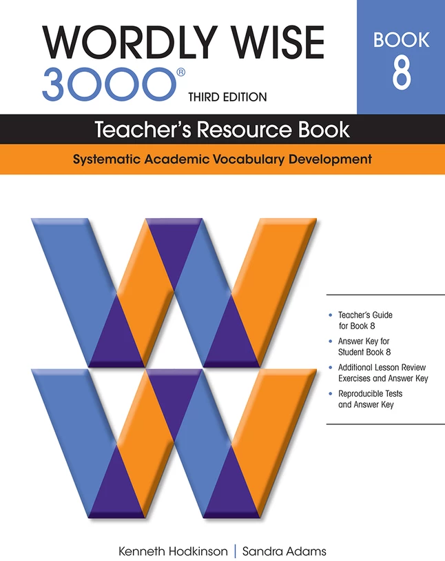 - Teacher’s Reference Book helps educators teach effective, engaging Grade 8 vocabulary instruction with pen-to-paper student exercises, reproducible tests, answer keys, teaching strategies and techniques, and more
