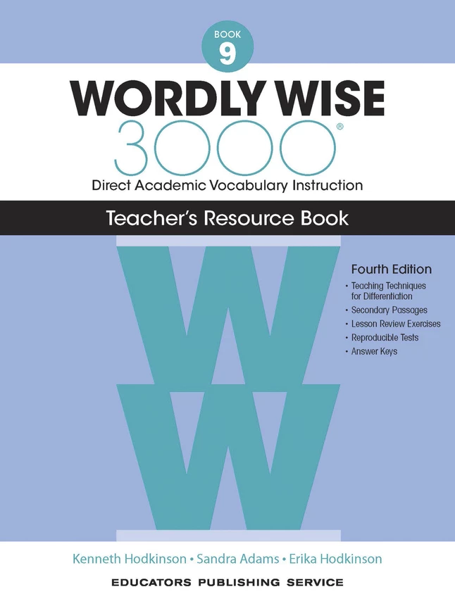 - Teacher’s Reference Book helps educators teach effective, engaging Grade 9 vocabulary instruction with pen-to-paper student exercises, reproducible tests, answer keys, teaching strategies and techniques, and more