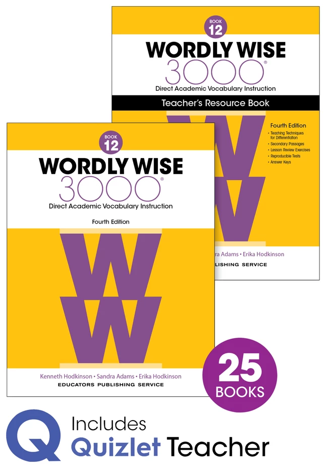 The Student Books also comes with 12 months of access to Quizlet (with Grade 12 words pre-loaded). Teacher Resource Books come with 12-month access to Quizlet Teacher (Grades 2-12).