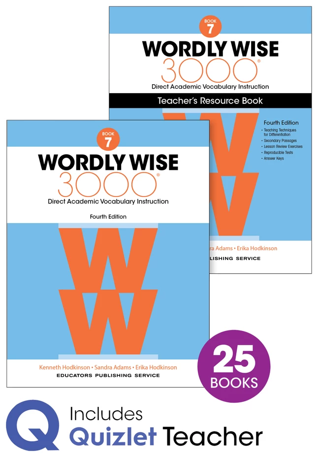 The student book also comes with 12 months of access to Quizlet (with Grade 7 words pre-loaded). Teacher Resource Book with 12-month access to Quizlet Teacher (Grades 2-12).