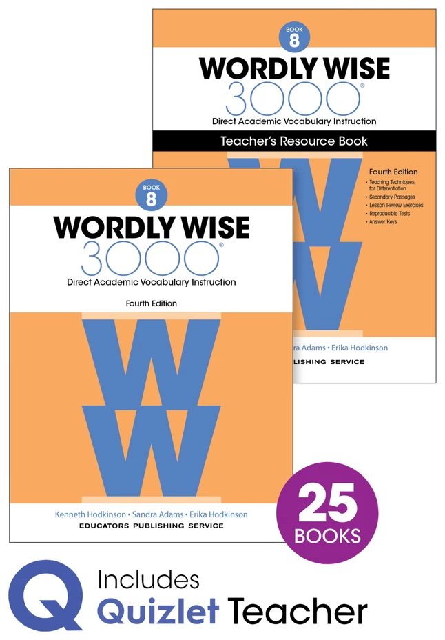 The student book also comes with 12 months of access to Quizlet (with Grade 8 words pre-loaded). Teacher Resource Book with 12-month access to Quizlet Teacher (Grades 2-12).
