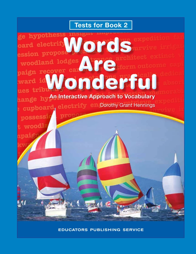 These tests will help teachers assess their student knowledge of the vocabulary words they have learned in Book 2 of Words Are Wonderful as well as their understanding of word elements and strategies for decoding unfamiliar words. At the same time, students practice multiple-choice test-taking formats that are widely used in mandatory state tests.